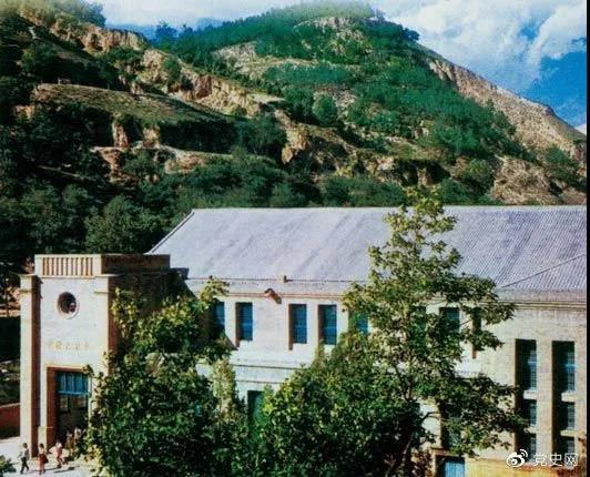 圖為中國共產黨第七次全國代表大會會址——延安楊家?guī)X中央大禮堂。