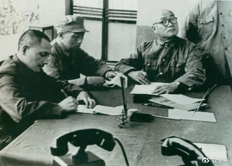 1949年11月1日起,人民解放軍向西南進(jìn)軍。圖為鄧小平與劉伯承、張際春等研究進(jìn)軍西南問題。