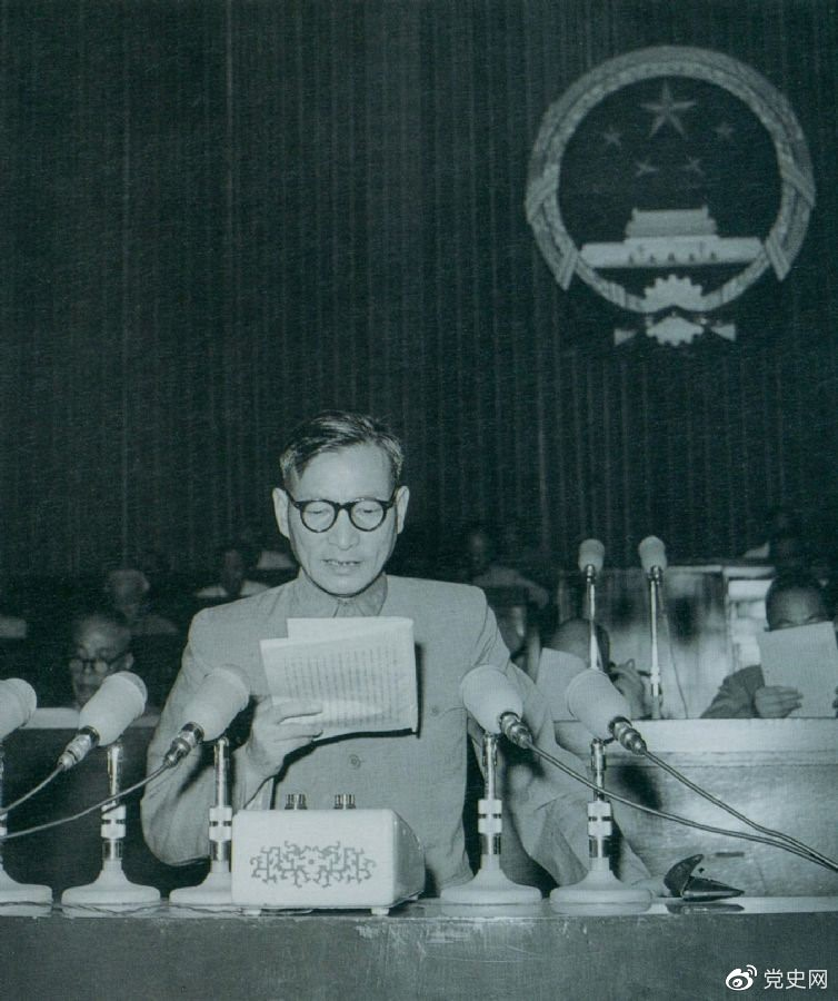 1955年7月,陳云在一屆全國人大二次會議上作堅持和改進(jìn)糧食統(tǒng)購統(tǒng)銷工作的報告。