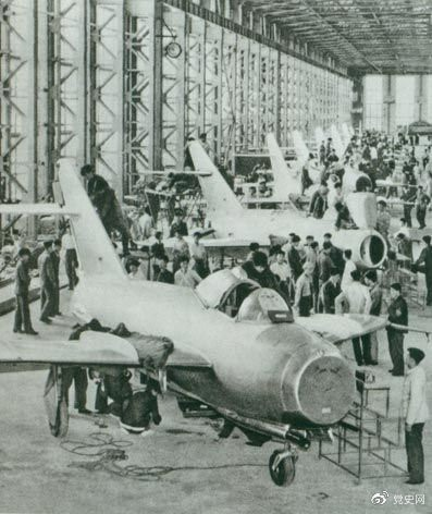 1956年7月19日,國產(chǎn)第一架噴氣式戰(zhàn)斗機(jī)在沈陽首次試飛成功,標(biāo)志著中國具備了獨(dú)立研制空軍武器裝備的能力。圖為國產(chǎn)第一批噴氣式飛機(jī)即將出廠。